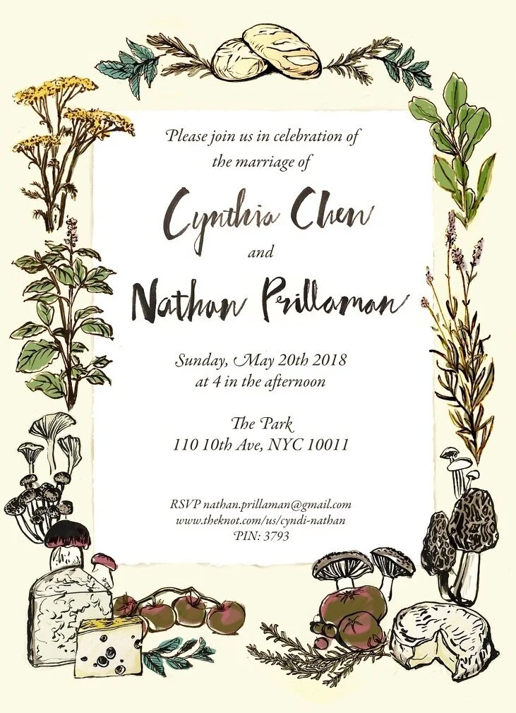 Invitation and print ephemera for a pair of foodie New Yorkers